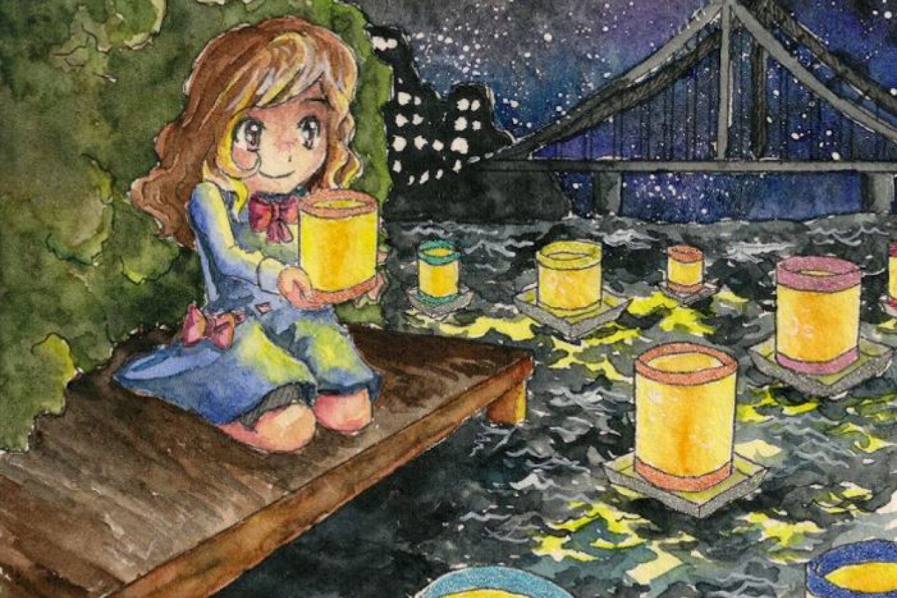 Wir sind dann zusammen zum Bach runter gegangen. Das war eine wunderschöne kleine Prozession mit den bunten Lichtern.